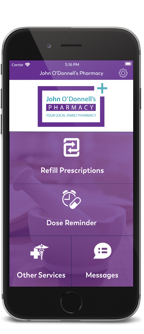 Download the app, enter our code 9024524 and select John O’Donnell’s Pharmacy